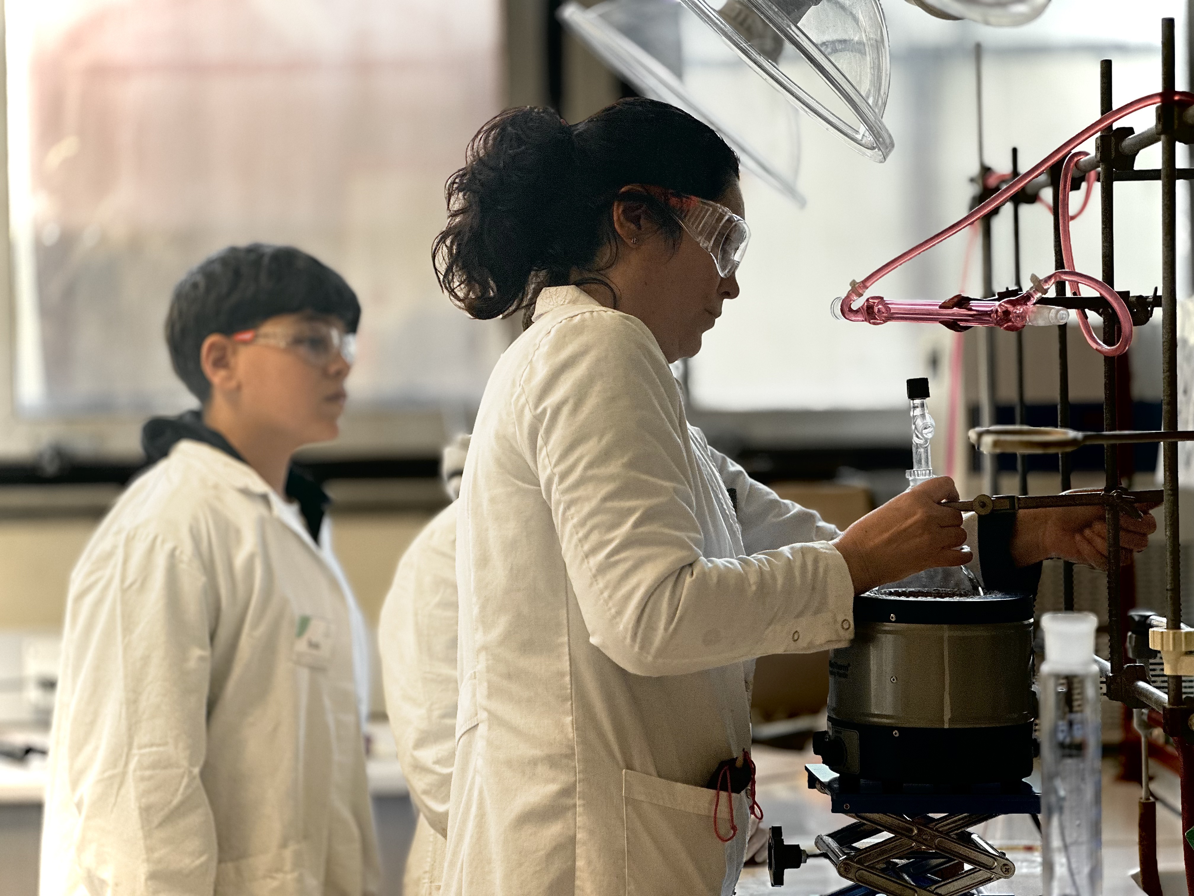 Vêtus de leurs blouses, les élèves ont mené un TP de chimie consacré à l’hydrodistillation, une technique d’extraction d’huiles essentielles, aux côtés de Caroline A Ahad Hadad et Maria Emilia Cano, enseignantes-chercheuses au LG2A. Lavande et clémentines ont embaumé les paillasses, tandis que curiosité, rigueur et enthousiasme rythmaient les manipulations.