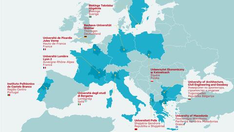 L’Alliance BAUHAUS4EU réunit 10 universités membres et 67 partenaires associés à travers l’Europe (établissements d'enseignement supérieur, alliances universitaires européennes, autorités régionales, municipales et locales, organismes de développement régional, pôles européens d'innovation numérique, parcs technologiques, centres d'innovation et associations d'entrepreneurs…). Elle forme un campus unique et une communauté d’apprentissage composée de 124 000 étudiants et 10 000 personnels.